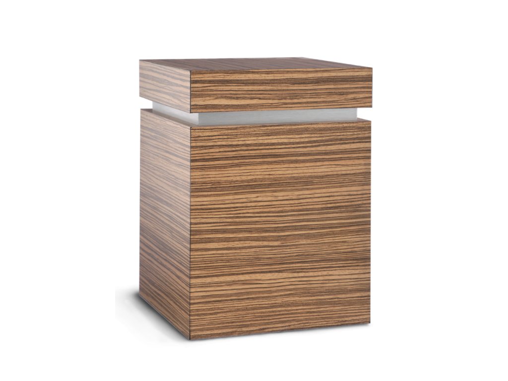 Dřevěné urny Ravenna zaujmou svým moderním a nadčasovým vzhledem doplněn výrazným stříbrným matným pruhem.