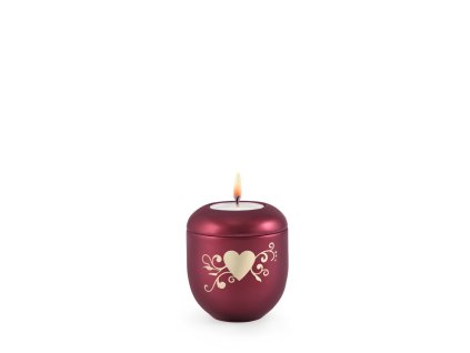 je vyrobená z kvalitnej keramiky a jej trblietavý perleťový povrch je vínový. Zdobí ju kríž z kvalitných kryštálov. Každý kameň je individuálne ručne aplikovaný. Kríž symbolizuje spojenie človeka so zemou a jeho blížnymi (horizontálna os kríža) a s božstvom (vertikálna os kríža). Miniatúrna urna má na viečku vlastnú čajovú sviečku.