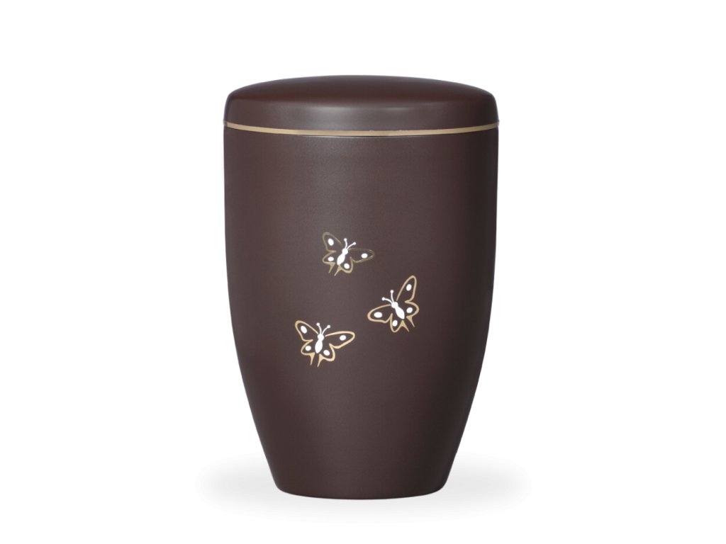 Kovová urna Ariela - Motýli/Hnědá