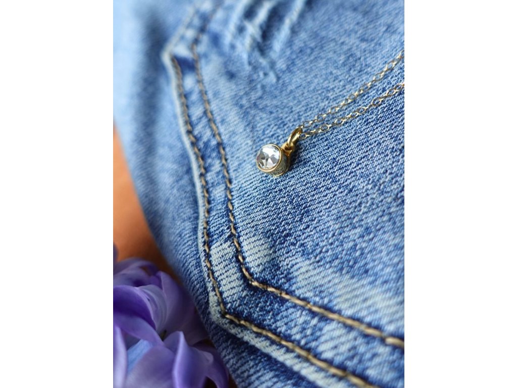 Náhrdelník s diamantovým krištáľom - apríl, pozlátený