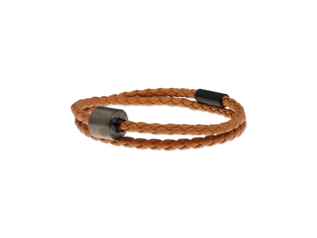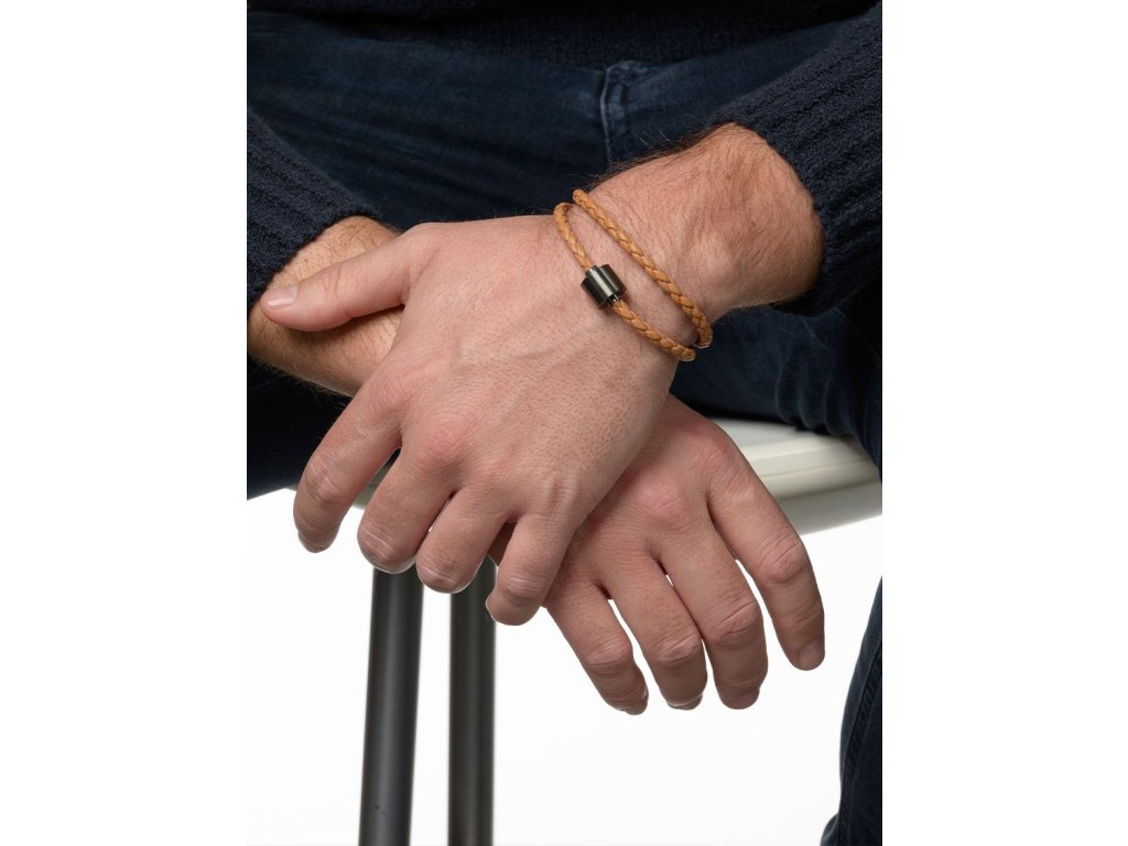 Pánsky kožený náramok, Cognac koža, čierny prívesok