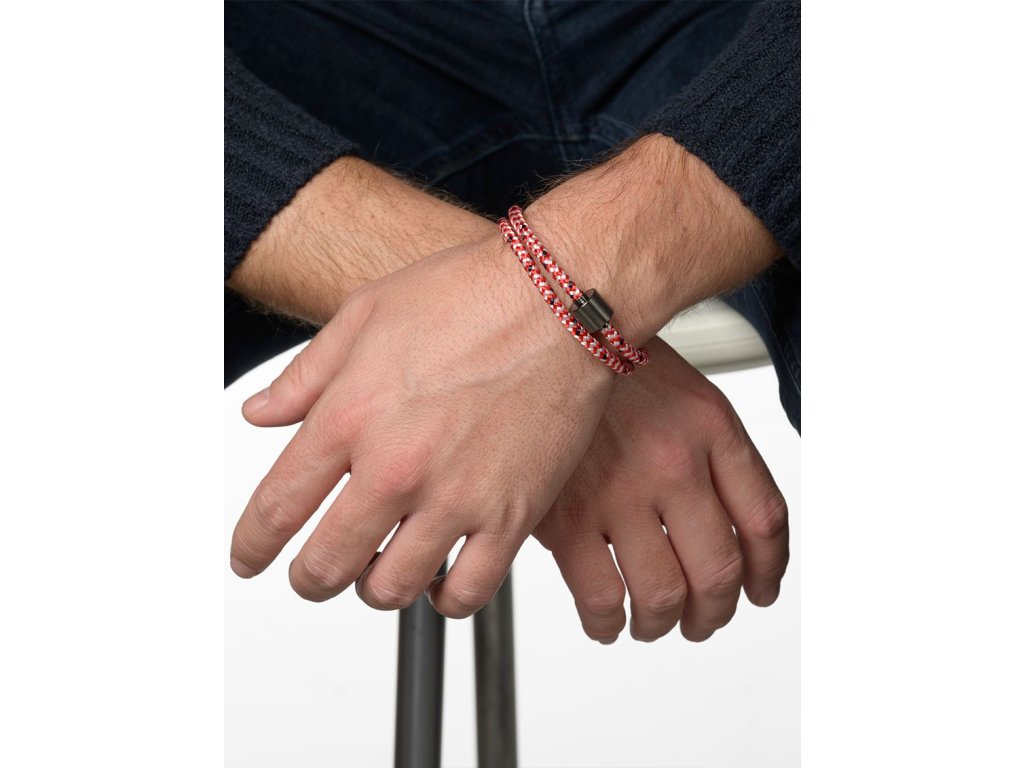 Pánsky Red & white šnúrový náramok, čierny prívesok